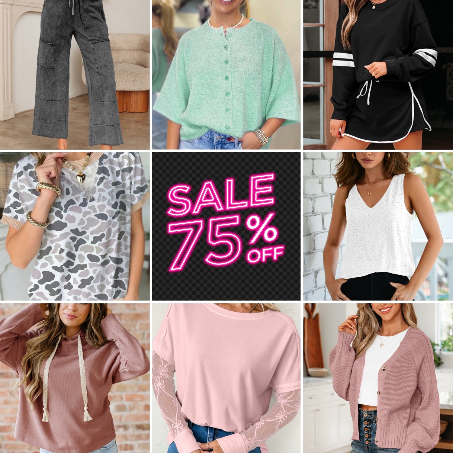 Peach Blossom 3/4 Sleeve Boxy Knit Button Down Sweater Cardigan