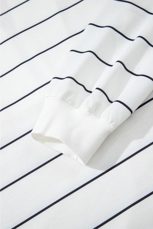 ššš° White Zip V Neck Casual Stripe Print Drop Shoulder Long Sleeve Top